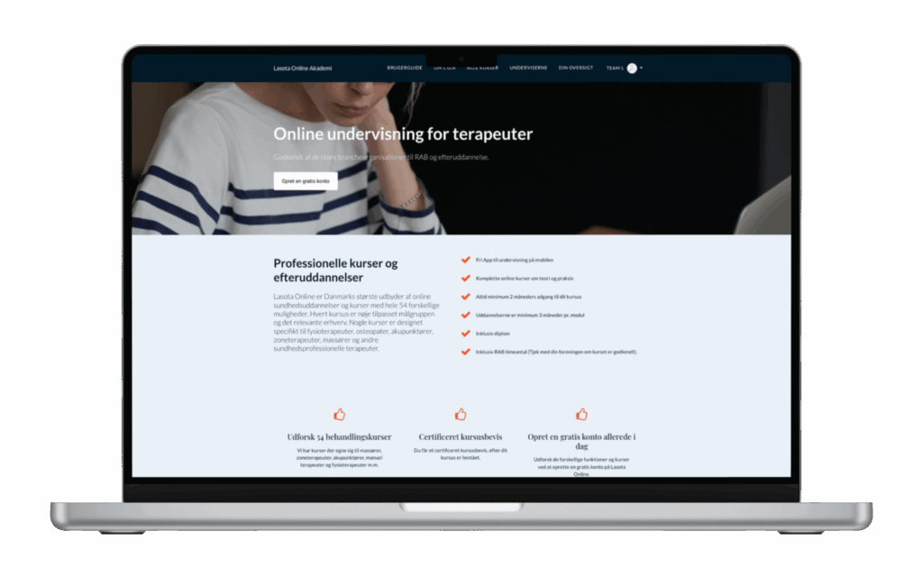 Lasota Online er Danmarks største udbyder af online sundhedsuddannelser og har over 54 forskellige kurser.